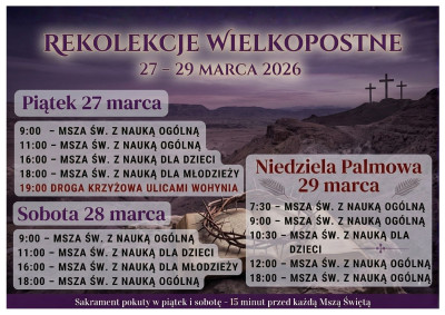 - We wtorek na Mszę Świętą wieczorową zapraszamy dzieci przygotowujące się do I Komunii Świętej.