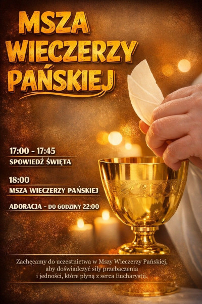 - We wtorek na Mszę Świętą wieczorową zapraszamy dzieci przygotowujące się do I Komunii Świętej.